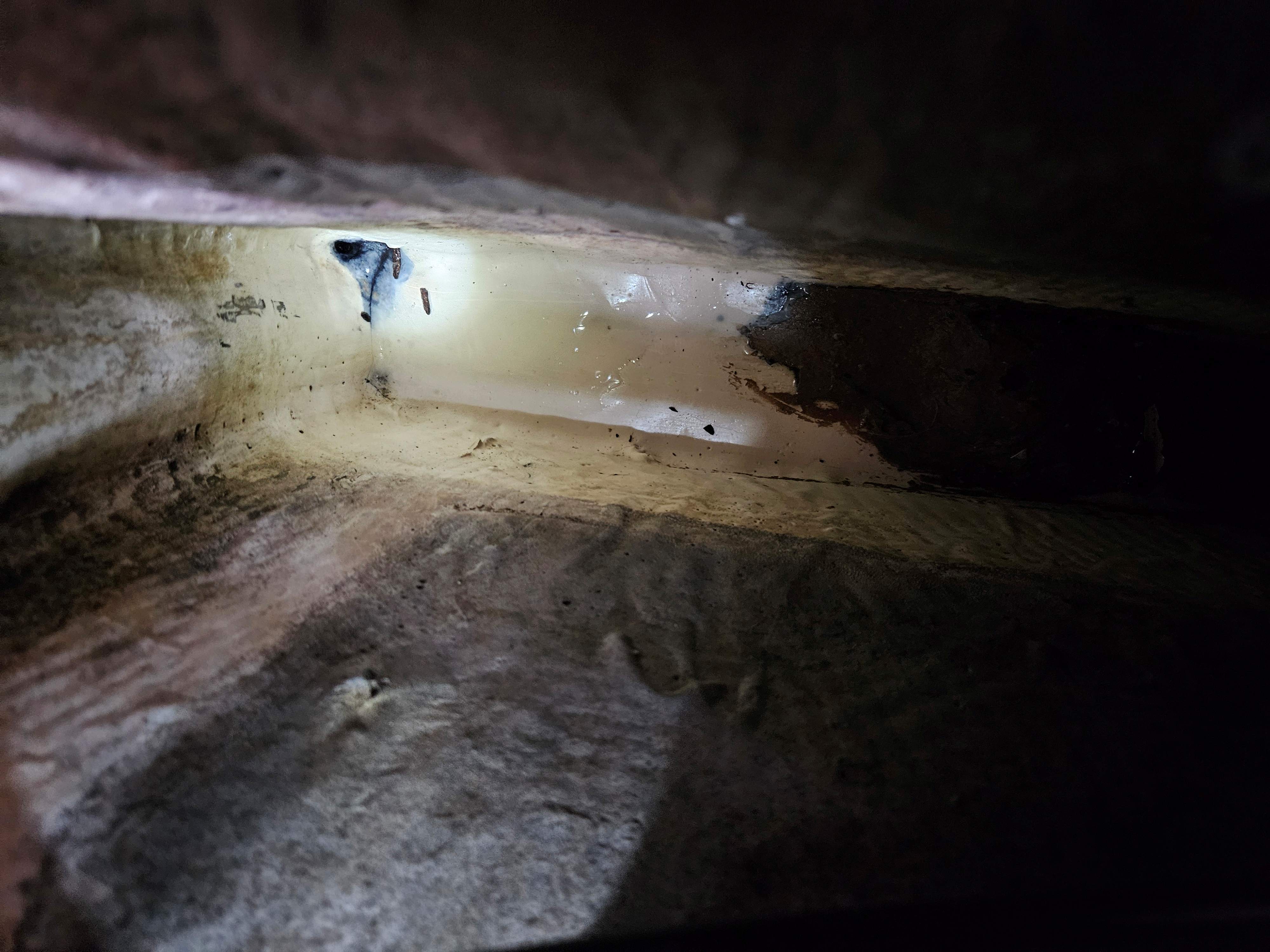 In that miniature bilge just forward of the rudder post, I now have a small leak that is constant. The drip is tiny - almost unnoticeable - about 1 small drop per minute.
